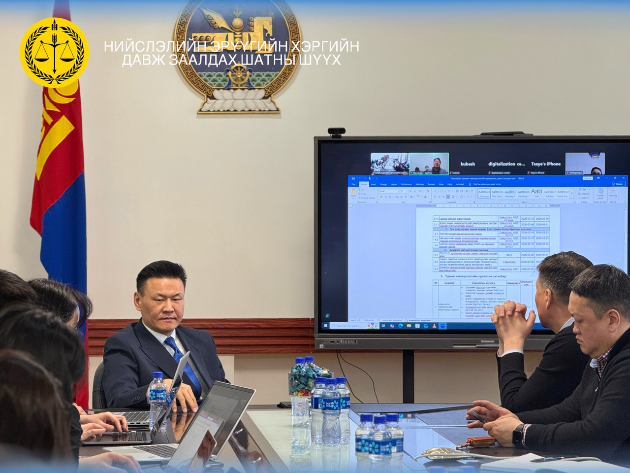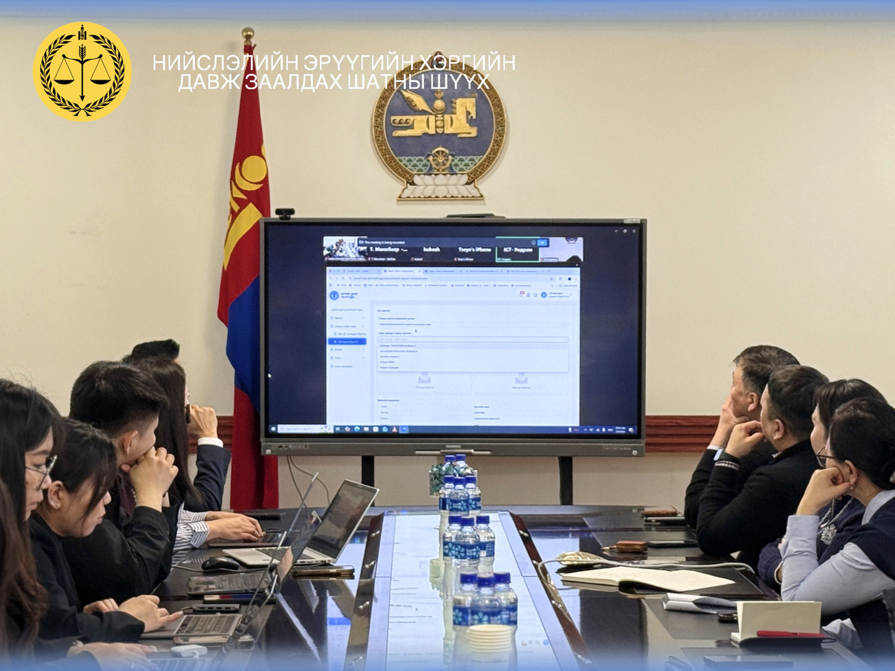 Өнөөдөр буюу 2026 оны 03 дугаар сарын 04-ний өдөр Нийслэлийн Эрүүгийн давж заалдах шатны шүүхэд Шүүхийн Ерөнхий зөвлөлийн гишүүн Г.Даваадорж, Шүүхийн цахимжилтын төвийн дарга Т.Мөнхбаяр нар “Цахим шүүх 2.0” цөм системийн танилцуулга уулзалт хийлээ.