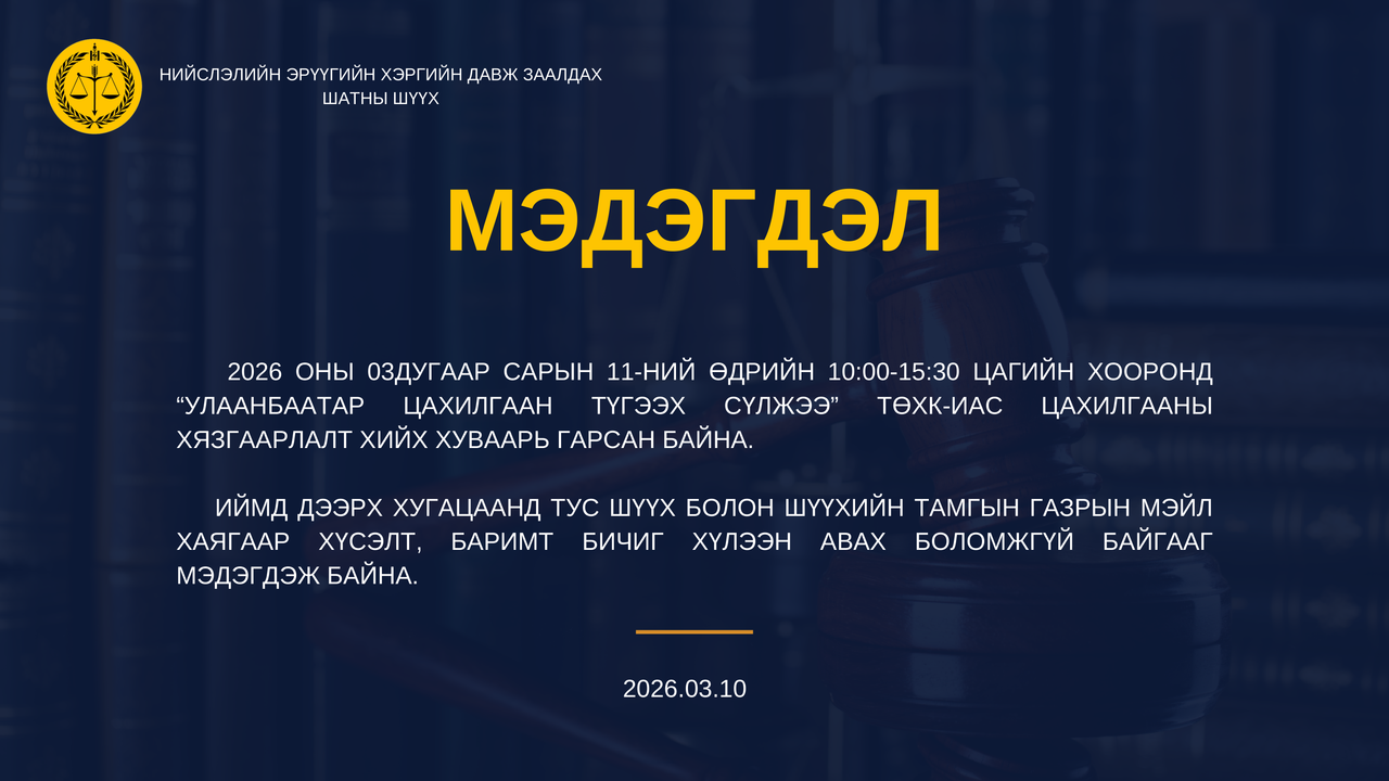 -- 2026он 01сар 30ны О.Булгамаад холбогдох эрүүгийн хэргийн тухай шүүх хуралдааны бичлэг --